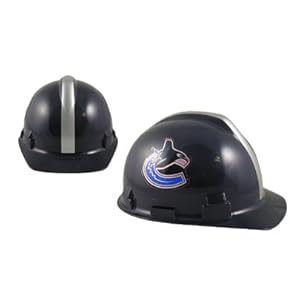 Support your favorite hockey team at work by wearing this NHL(r) hard hat from Wincraft(r). This durable hard hat complies with OSHA regulations for industrial head protection and has a pre-lock suspension system to help ensure a comfortable fit. The officially licensed hard hat is decorated in the team colors, has an anti-glare peak, is slotted to accept attachments, and proudly displays the team graphic decals. List price: $39.99