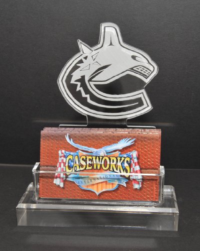 Our NHL Team Logo business card holder in an attractive gift box will show your clients and friends who your favorite team is with style!! Our acrylic, crystal design is uniquely engraved with the NHL League logo or your favorite NHL team logo. Business cards not included. Measures 2"W X 5"D X 6"H. Made in the USA. List price: $24.99